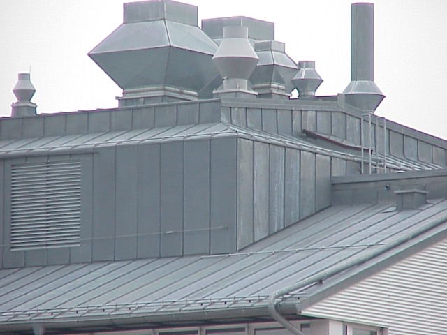 Es wurde eine Titanzink Doppelstehfalzdeckung mit einer Scharenbreite von 600 mm und 0,8 mm Dicke auf einer 24 mm dicken Holzschalung mit Trennlage verlegt. Die Senkrechte Blechverkleidungen sind in Stehfalztechnik mit Titanzink 1,0 mm ausgeführt.
